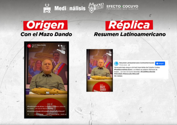 - Manipulación informativa sobre la acción militar de Estados Unidos en Venezuela: 20 medios participantes. (Ej.: 1, 2, 3, 4, 5)