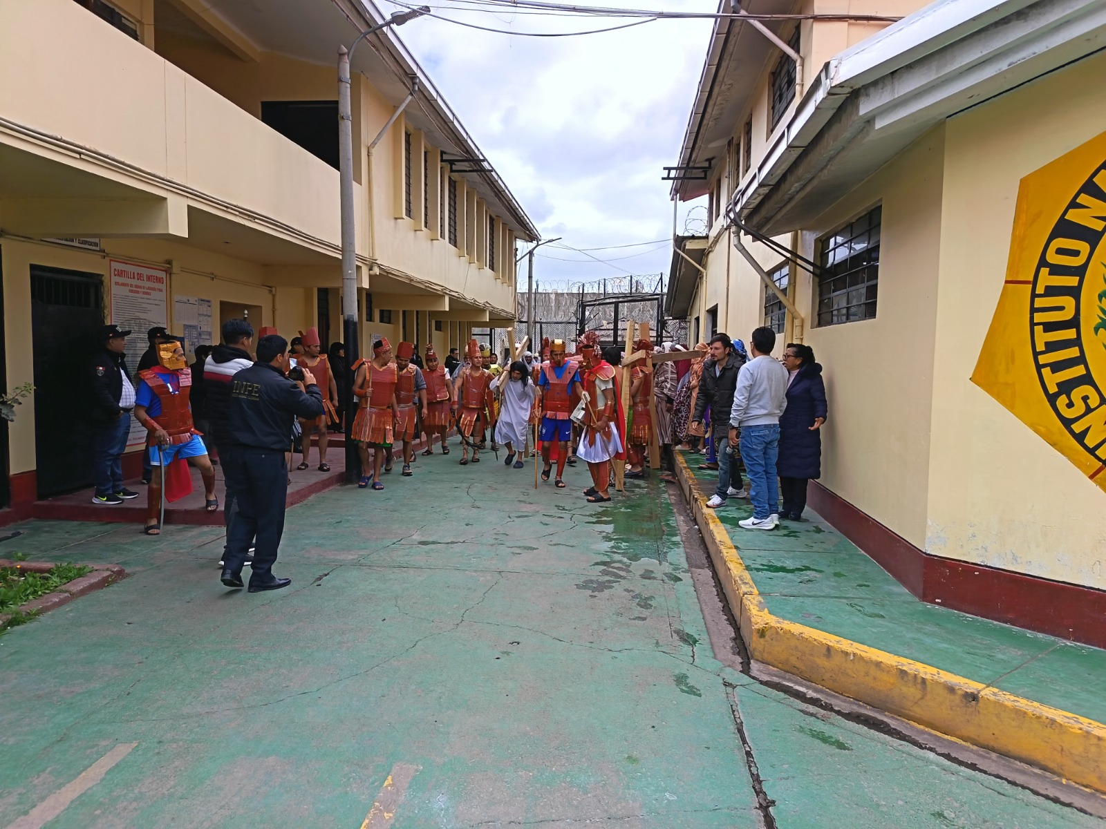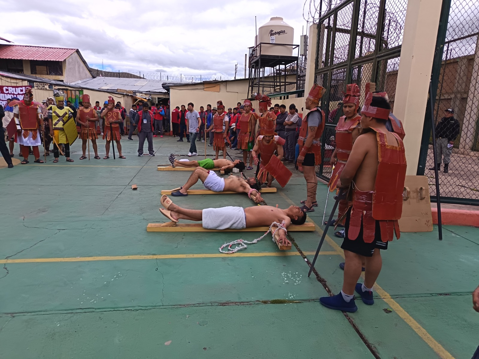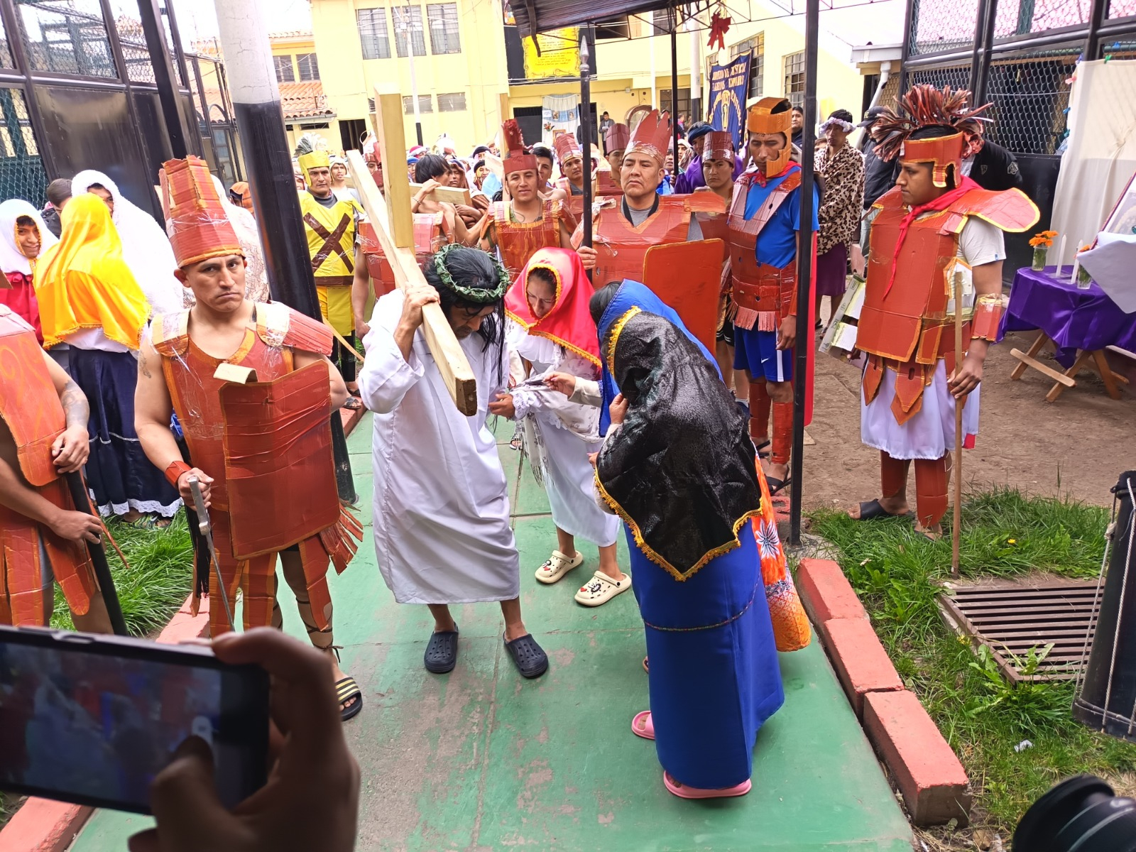 En el penal de Juliaca, cincuenta internos de los pabellones 2, 3 y 5 participaron en la escenificación del Vía Crucis, representando la vida, pasión y muerte de Jesucristo. El recorrido se desarrolló en el patio principal, la rotonda y los pasadizos hacia los pabellones y áreas de trabajo, en un ambiente de respeto y recogimiento. Previamente, se realizó una misa con la participación de autoridades y personal penitenciario.