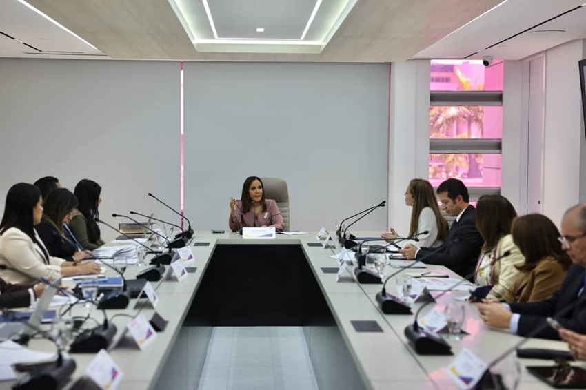 La titular de Comercio Exterior, al frente del equipo negociador venezolano, junto a la viceministra de Política Comercial Internacional, Andreina Tarazón, recibieron en Caracas a la delegación colombiana, en la que participó la jefa negociadora del Ministerio de Comercio, Industria y Turismo de Colombia, Sofía Cañón, acompañada por el embajador de Colombia, Milton Rengifo.