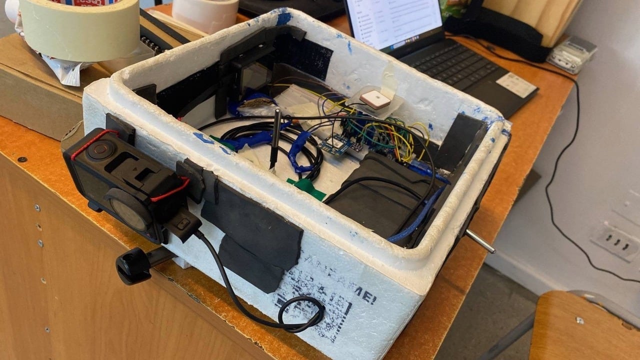 De acuerdo con Paulina López, estudiante de 3° medio, “en la caja iban las cámaras con las que pudimos grabar la estratósfera. También llevábamos circuitos y todos participamos en el armado del experimento”.