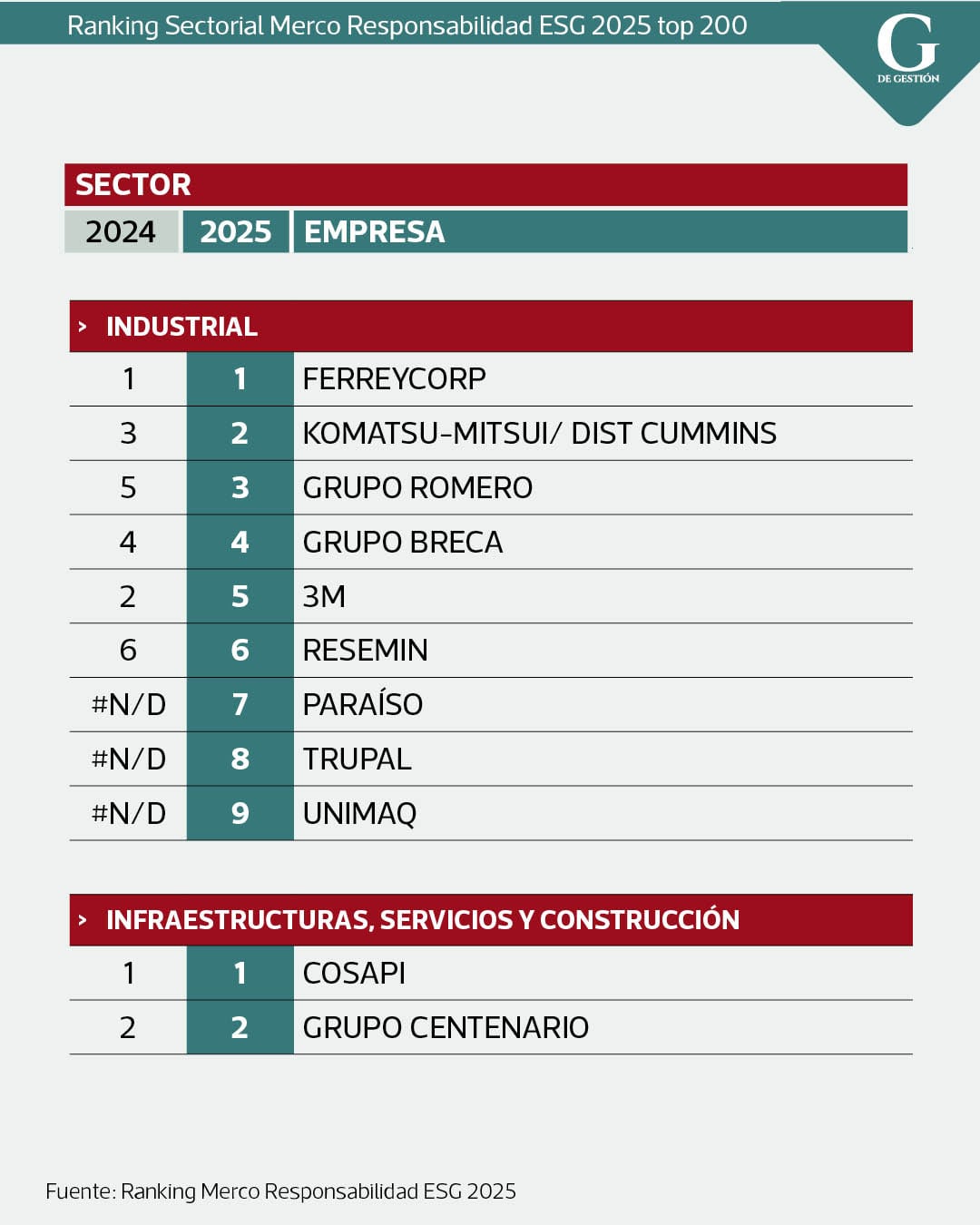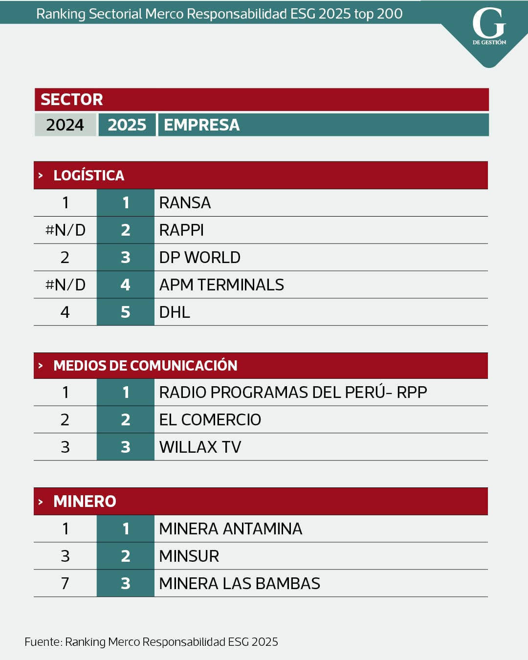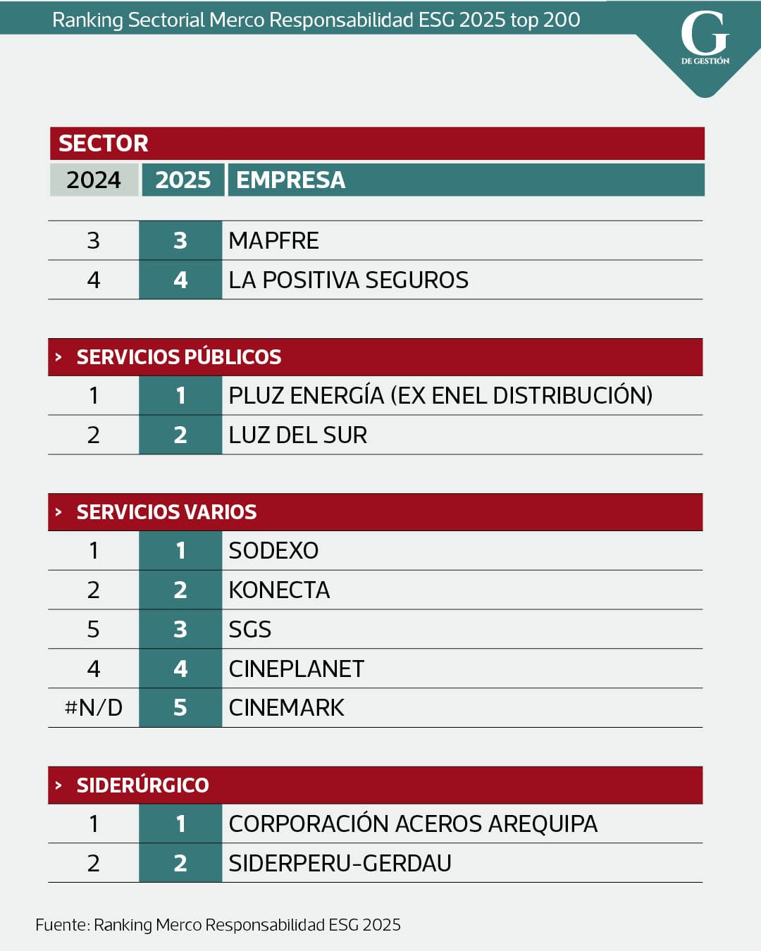 Las 29 empresas en Perú que entraron al Top 200 sectorial del Ranking Merco ESG 2025