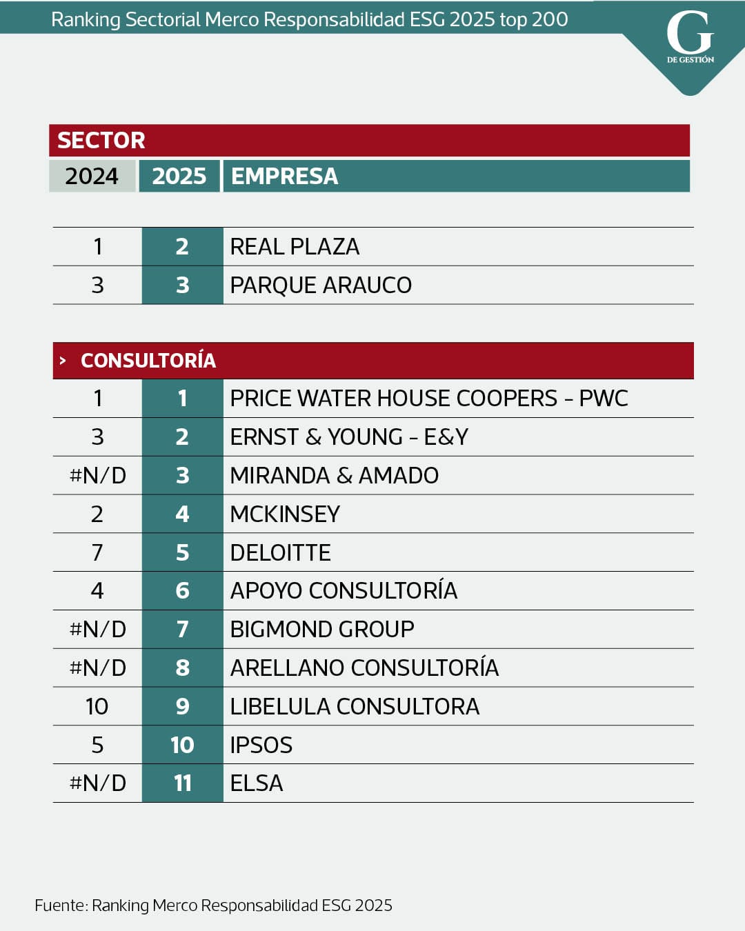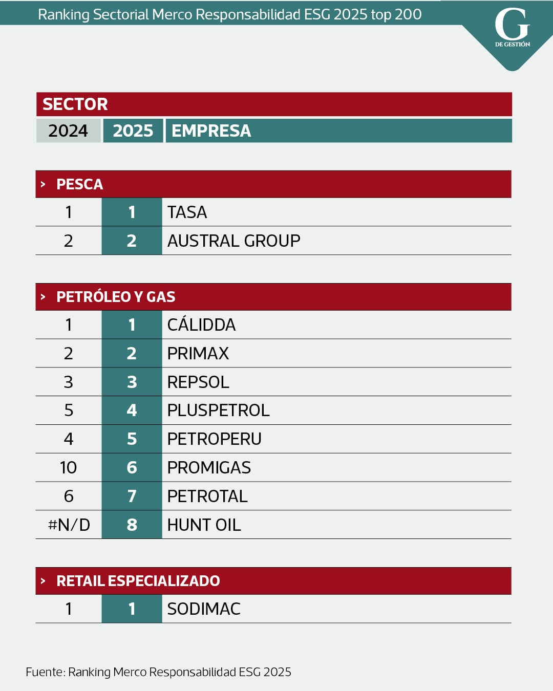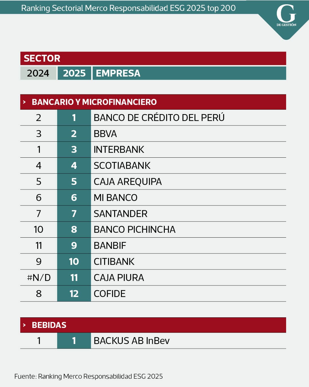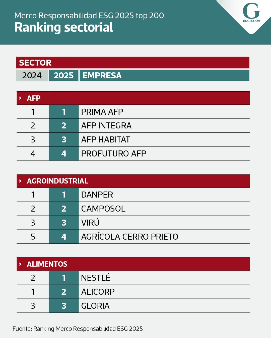 Las 29 empresas en Perú que entraron al Top 200 sectorial del Ranking Merco ESG 2025