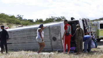 EL NUEVO DIARIO, PERAVIA.- Una persona falleció y otras seis resultaron heridas la mañana de este domingo, tras el vuelco de un autobús ocurrido en la circunvalación de Baní, específicamente en el tramo de Sabana Indio.