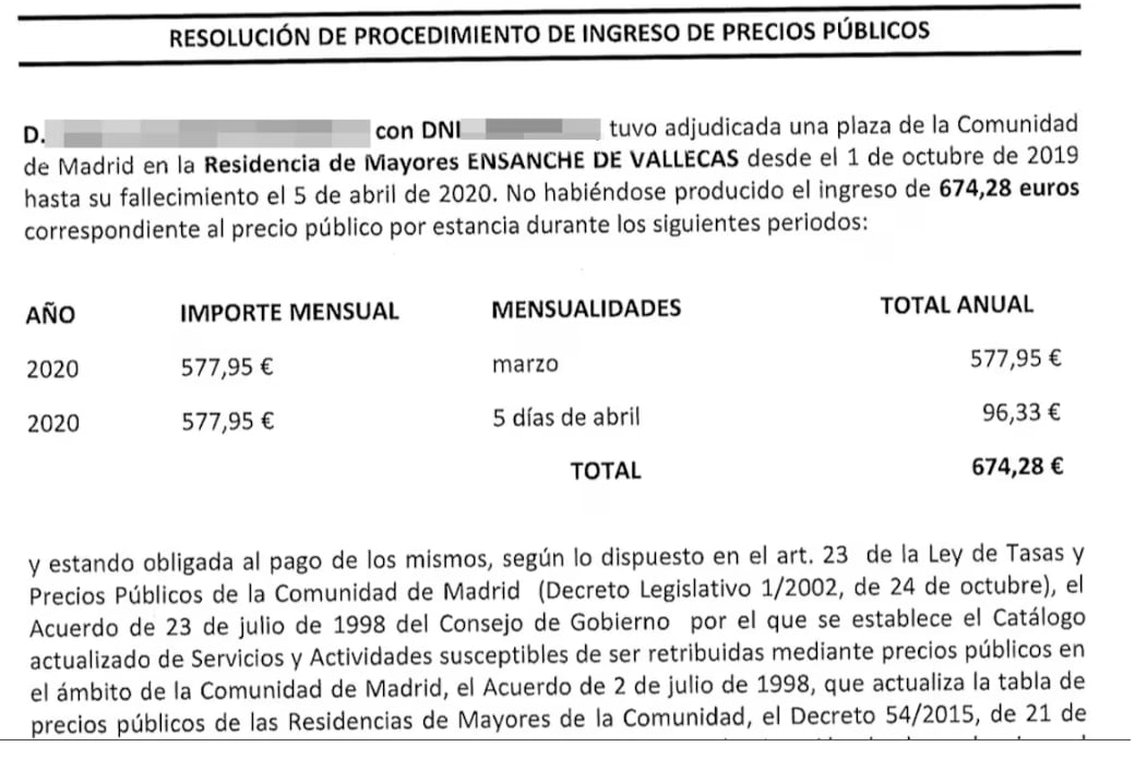Hace casi seis años de los sucesos de la pandemia en las residencias de Madrid y desde entonces los hijos de los fallecidos han acumulado una derrota tras otra. Por eso, este viernes a las 11.09 María de Álvaro tenía poca fe cuando recibió un SMS alertándole de que tenía una notificación de la Consejería de Hacienda madrileña. Sabía que debía de ser la respuesta a una disputa pendiente por un asunto que le llena de rabia y pena. La Comunidad de Madrid le reclamaba la deuda por los últimos días que su padre vivió en la residencia pública del Ensanche de Vallecas, donde murió el 5 de abril de 2020 sin traslado hospitalario. Ella recurrió, perdió, volvió a recurrir y creía que este era otro portazo. La segunda negativa de la administración, previa a la vía judicial. Estaba equivocada. “¡Hemos ganado!“, gritó en su piso de Vallecas.