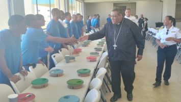 Durante la jornada, el religioso estuvo acompañado por el obispo de San Pedro de Macorís, Santiago Rodríguez Rodríguez, así como por el padre fray Arístides Jiménez Richardson y miembros de la Comisión Nacional de Pastoral Penitenciaria.