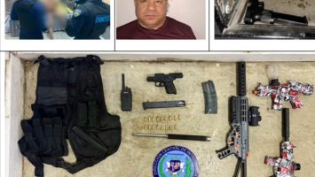 Durante el allanamiento, fueron ocupados los siguientes artículos, una pistola calibre 9mm con su cargador y varias cápsulas, un chaleco táctico de uso militar con porta pistola, un cinturón táctico, un bastón metálico retráctil, un fusil de hidrogel, dos pistolas plásticas de hidrogel.