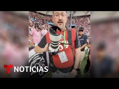 Vea cómo el pelotazo de Messi rompió la cámara de un fotógrafo deportivo
