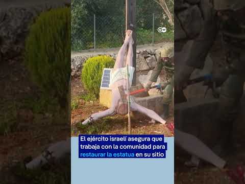 Un soldado israelí golpea la cabeza de una estatua de Jesús en el Líbano