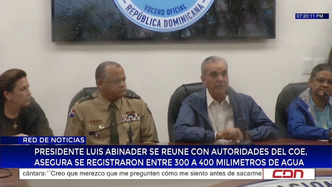 Abinader se reúne con autoridades del COE; asegura se registraron entre 300 a 400 milímetros de agua